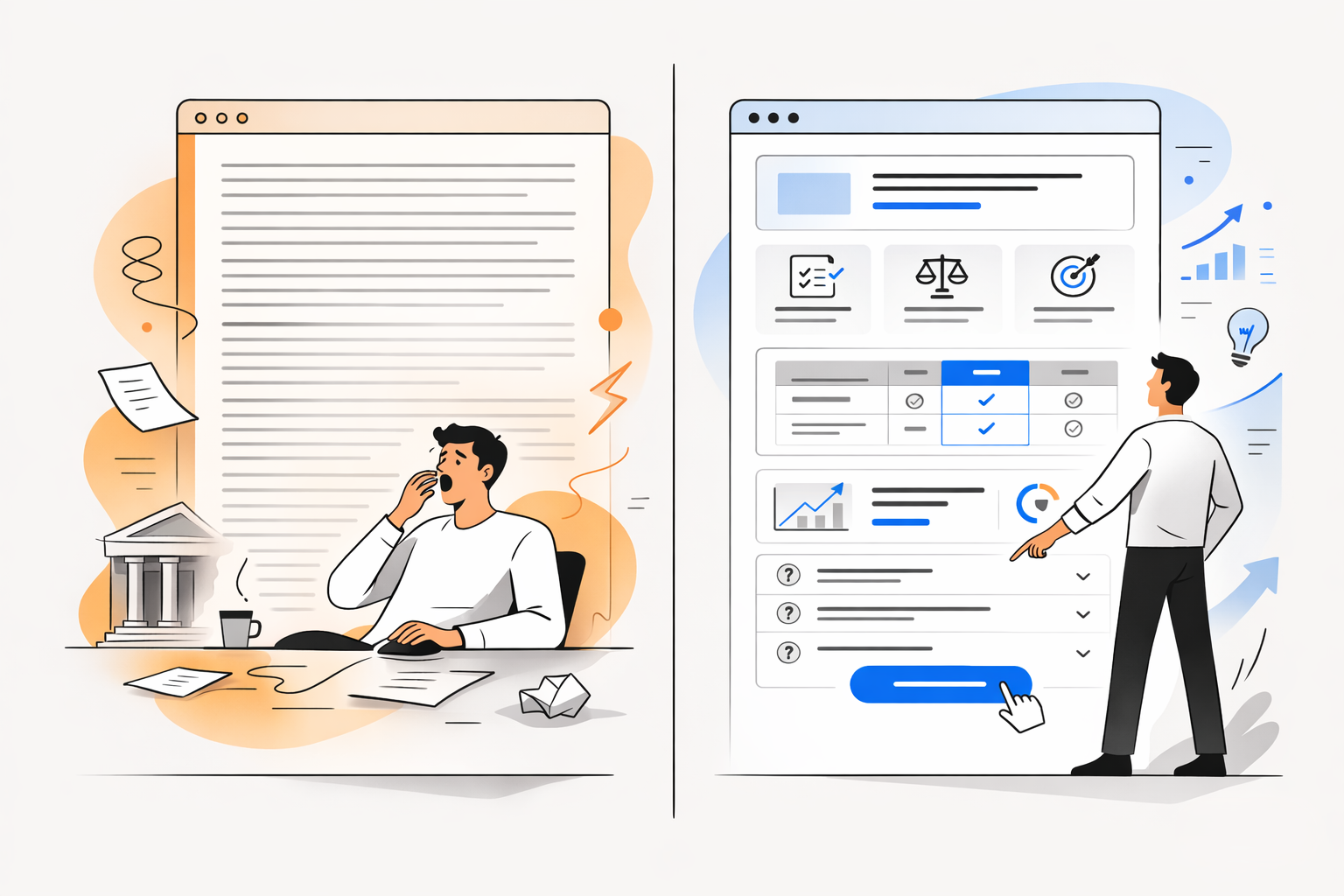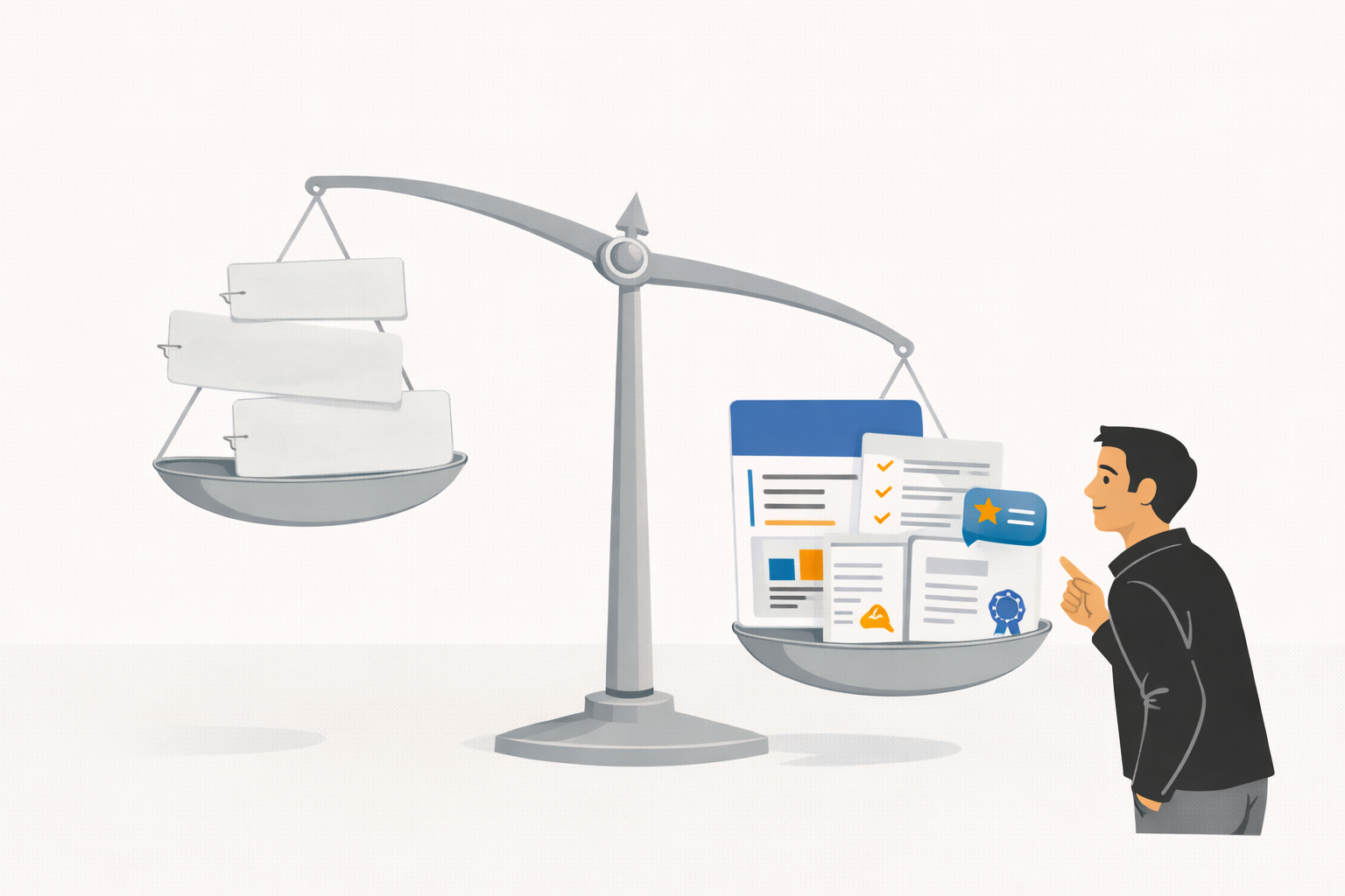 Это больнее всего. Вы заходите на страницу, и там: «команда профессионалов, индивидуальный подход, высокое качество». У конкурента — то же самое, только фон другой. В новой выдаче одинаковость — смертельна. Потому что когда выбора много, выигрывают те, кто доказывает.